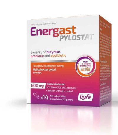 Energast Pylostat™ was developed within this framework as a supportive gastric formulation combining Microencapsulated Sodium Butyrate (MSB®) with Saccharomyces boulardii CNCM I-3799 and inactivated Lactobacillus reuteri DSM 17648. The product is explicitly positioned to support gastric comfort and mucosal balance and is not intended to eradicate or treat H. pylori infection.