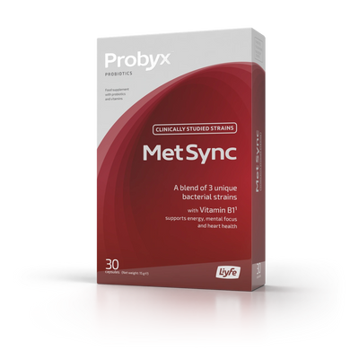 Probyx MetSync™ was developed within this scientific context as an outcome-led microbiome formulation designed to support metabolic balance and long-term metabolic resilience. Rather than targeting isolated biomarkers, MetSync reflects a systems-based approach that recognises metabolism as an emergent property of interconnected biological processes. The product is based on the SynbÆctive® MetSyn probiotic blend developed by SynBalance, which has been investigated in human clinical studies focusing on metabolic and cardiometabolic parameters. MetSync is positioned within a preventive framework, intended to support metabolic equilibrium rather than replace medical treatment for metabolic disease.